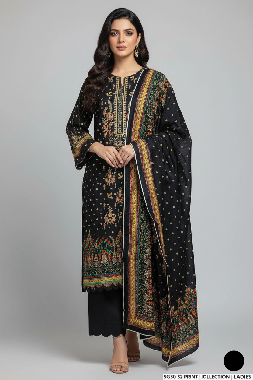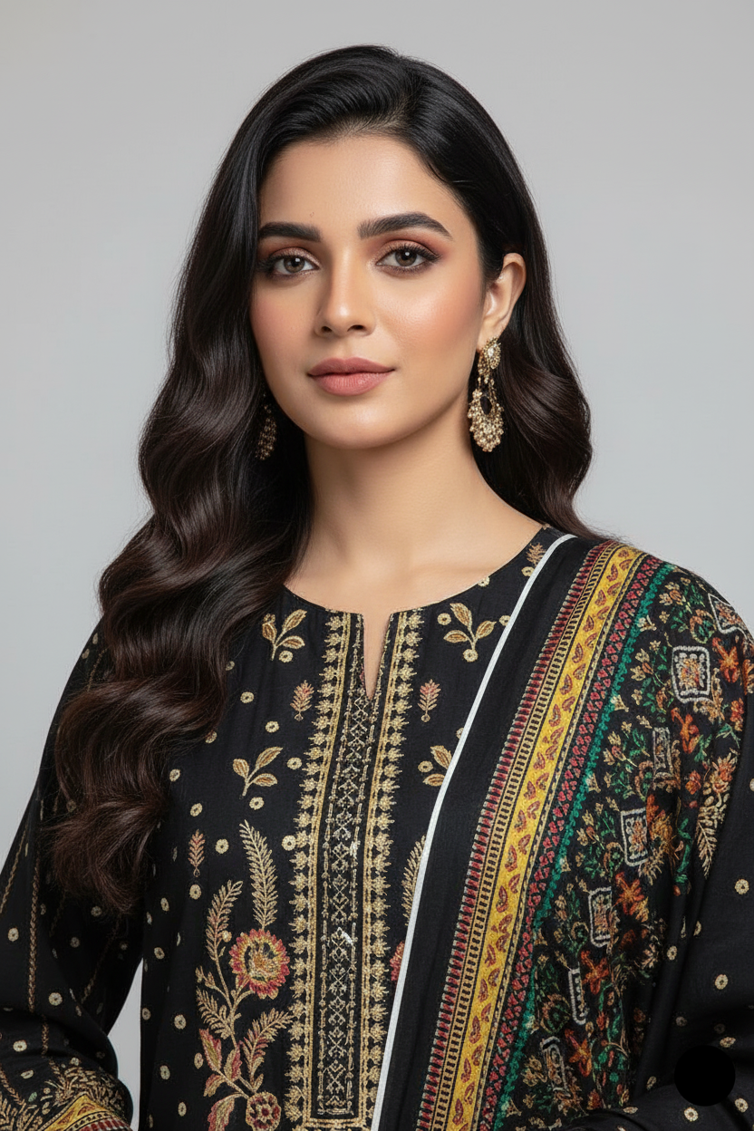 This elegant and breathable outfit features a lawn shirt, lawn trousers, and a matching lawn dupatta, making it an excellent choice for warm weather. Styled as a Straight Shirt, it offers a clean, modern silhouette while maintaining traditional charm. The shirt length ranges from 39 to 41 inches, providing a graceful and flattering drape. Weighing just 0.450 KG, this outfit is lightweight, comfortable, and perfect for everyday wear or casual gatherings.