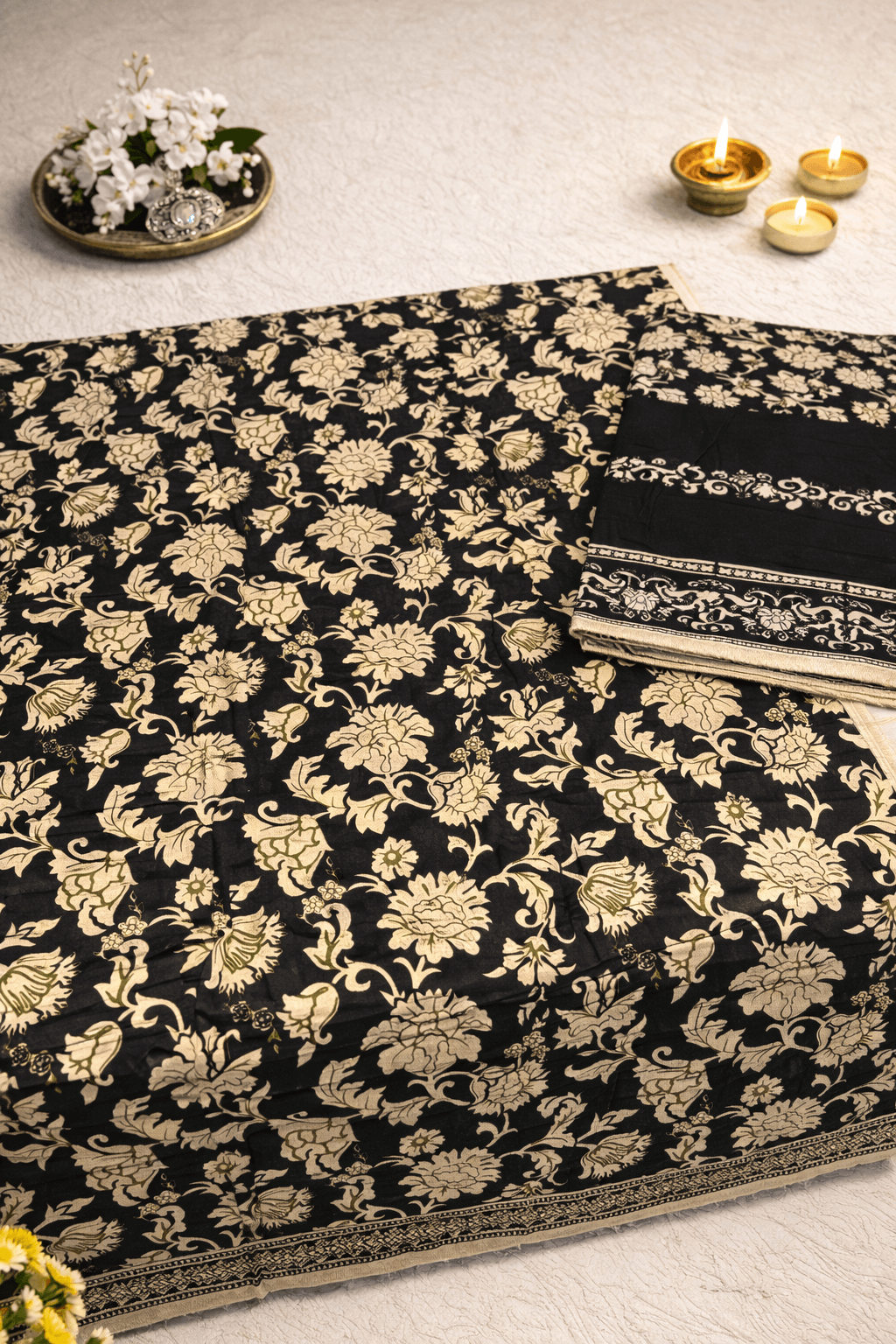Machine wash cold, gentle, or delicate | Soak and wash dark and light colors separately | Do not use bleach or stain removing chemicals | Line dry in shade | Iron at medium heat | Dry clean | Do not dry in direct sunlight.