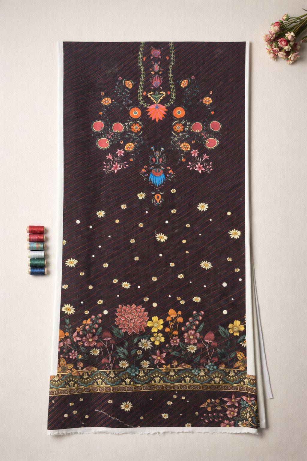 Machine wash cold, gentle, or delicate | Soak and wash dark and light colors separately | Do not use bleach or stain removing chemicals | Line dry in shade | Iron at medium heat | Dry clean | Do not dry in direct sunlight.