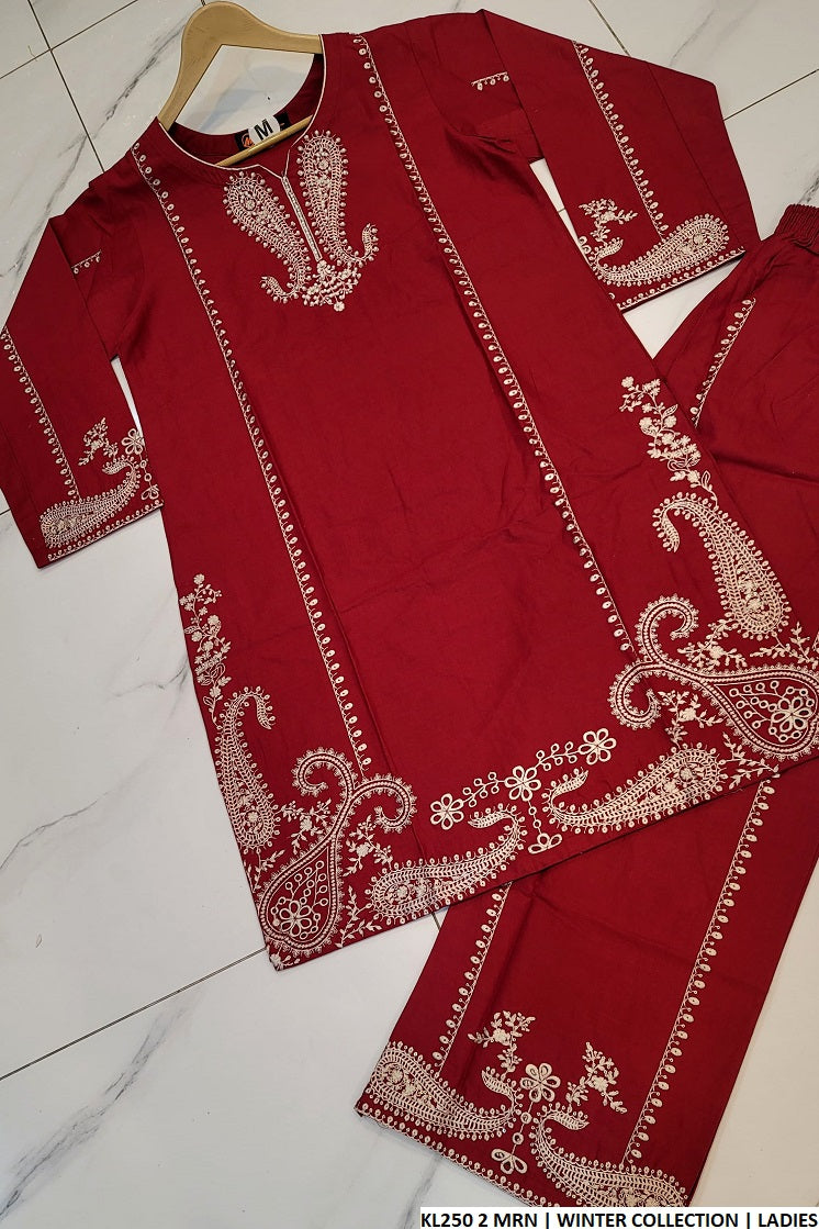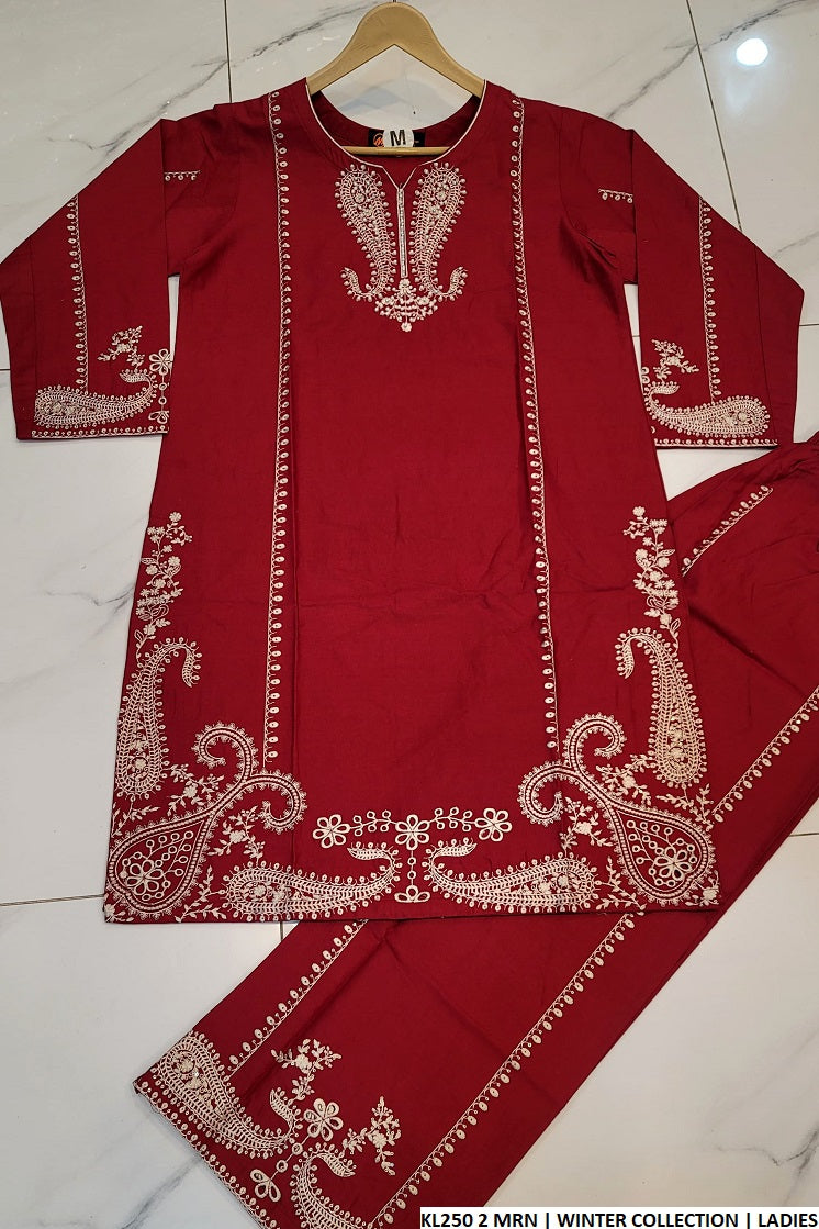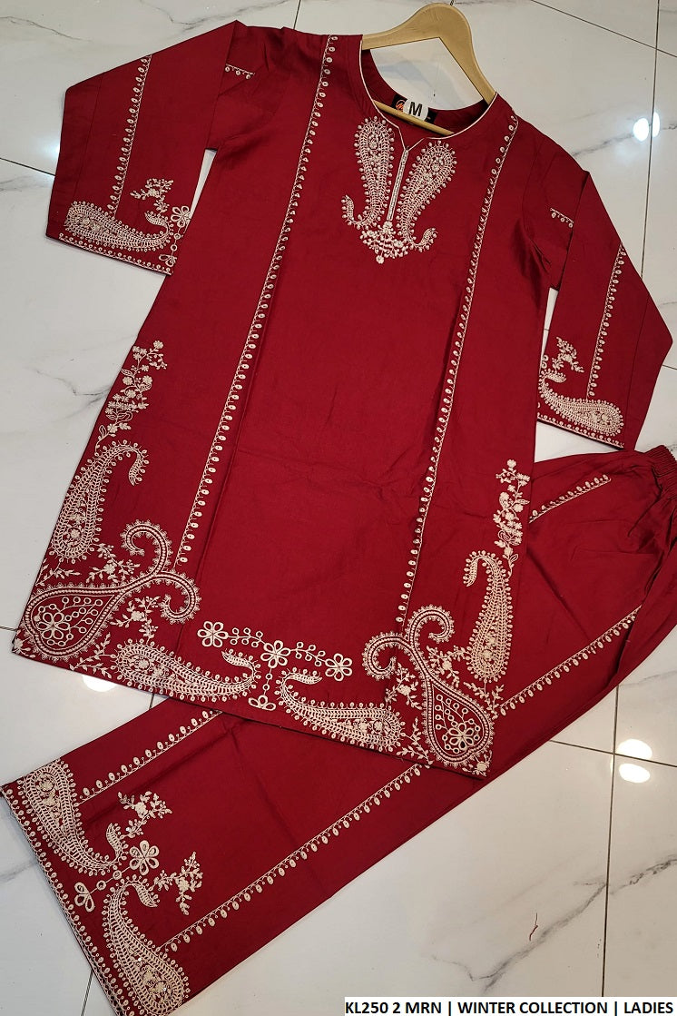 - This stylish outfit is made from high-quality winter cotton, providing both warmth and comfort for the colder months. The ensemble features a straight shirt with a length of 37/39 inches, offering a flattering and comfortable fit. Paired with matching plazo trousers, also crafted from winter cotton, the outfit provides a chic and cozy look. A dupatta made from 2PC fabric adds an elegant finishing touch. Weighing just 0.600 kg, this lightweight yet warm outfit is perfect for staying fashionable and comfortable throughout the winter season.