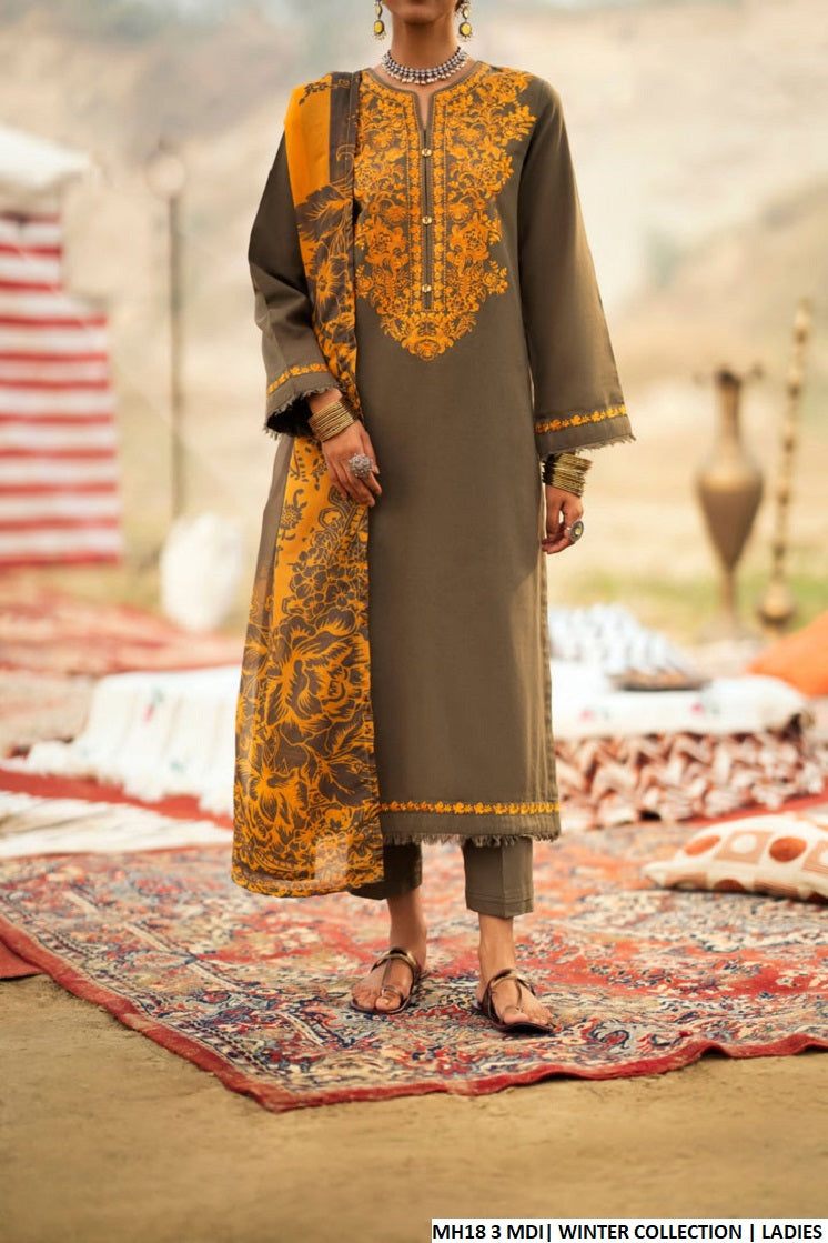 - This elegant outfit features a straight shirt crafted from Sulb Khaddar fabric, paired with matching Sulb Khaddar trousers for a cohesive and sophisticated look. The shirt, with a length of 43/45 inches, offers a comfortable and flattering fit. The dupatta is beautifully digitally printed, adding a modern touch to the ensemble. With a weight of just 0.650 kg, this set is lightweight yet stylish, making it a perfect choice for both casual and semi-formal occasions.