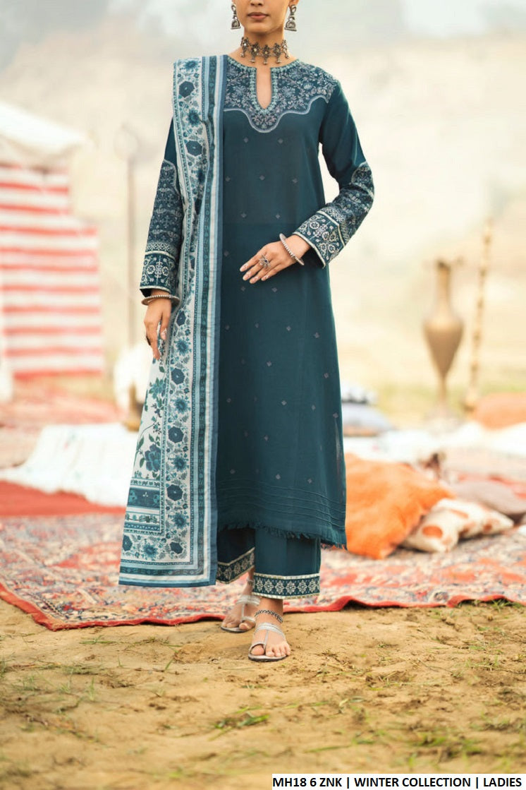 - This ensemble features a straight shirt crafted from Sulb Khaddar fabric, paired with matching trousers made from the same material for a cohesive look. The shirt length measures 43/45 inches, ensuring a comfortable fit. The dupatta is designed with a digital print, adding a modern and vibrant touch to the outfit. With a weight of 0.650 kg, this attire is light yet stylish, making it suitable for various occasions.