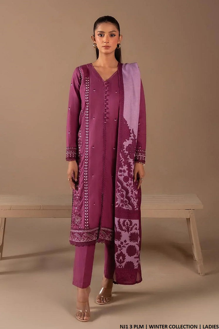 - This ensemble features a straight shirt made from durable khaddar fabric, paired with matching khaddar trousers. The outfit is completed with a digital wool shawl as the dupatta, offering warmth and style. The shirt has a length of 43/45 inches, making it suitable for various body types. Weighing 0.900 kg, this set is designed for comfort and longevity, making it an ideal choice for cooler weather.