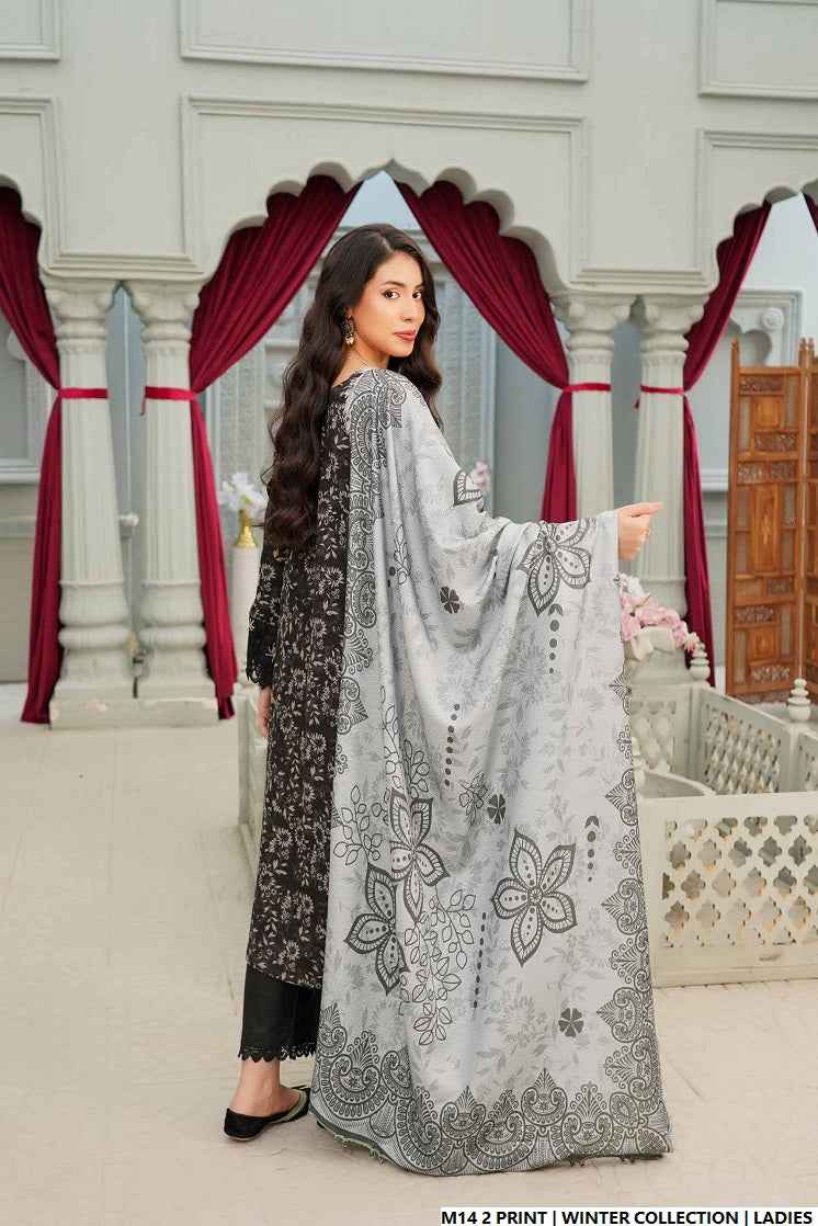 This elegant outfit features a premium Dhanak fabric shirt paired with matching Dhanak trousers, ensuring comfort and style in cooler weather. The wool shawl dupatta adds warmth and a luxurious touch, making it ideal for fall and winter occasions. Designed in a graceful A-line shirt style, the shirt has a length of 41 to 43 inches, offering a flattering silhouette. The outfit weighs approximately 0.750 kg, providing a perfect balance of structure and wearability.