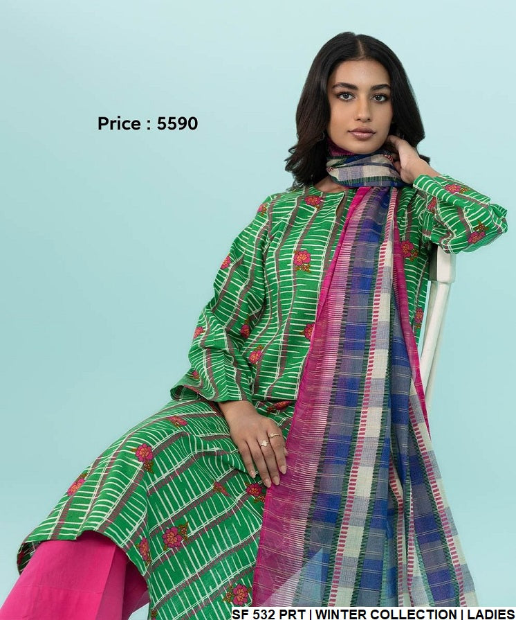 - This stylish outfit features an A-line shirt made from high-quality khaddar fabric, known for its comfort and durability. The shirt, with a length of 44/46 inches, offers a relaxed and flattering fit. The trouser fabric is made from pure cotton, ensuring a soft and breathable feel, while the dupatta is beautifully digital printed, adding an extra touch of elegance to the ensemble. Weighing just 0.550 kg, this lightweight set is perfect for everyday wear and can be easily dressed up or down for various occasions.