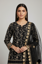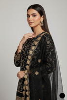 This elegant ensemble features a Chiffon fabric shirt paired with a Jamawar gharara, offering a timeless and regal look. The outfit is beautifully enhanced by a delicate Organza dupatta, adding a touch of grace and sophistication. Designed in a Shirt with Gharara style, the shirt length ranges between 37 to 39 inches, creating a flattering and traditional silhouette. With a total weight of 1.150 KG, this outfit is lightweight yet luxurious, making it a perfect choice for festive and formal occasions.