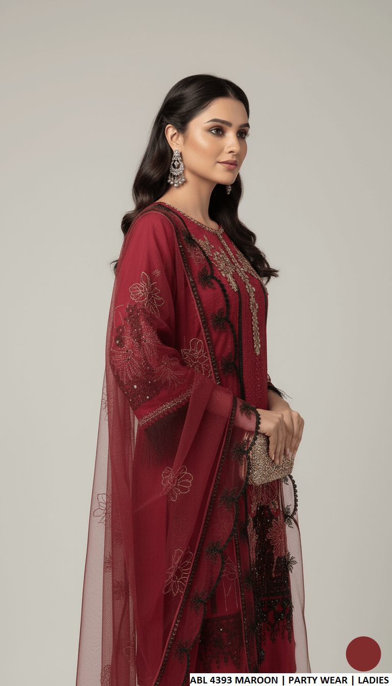 This elegant outfit features a premium organza shirt paired with comfortable viscose palazzo trousers, offering a perfect blend of style and ease. The look is completed with a delicate net dupatta that adds a graceful and contemporary touch. Designed in a modern shirt open cut with palazzo style, the shirt comes in a length of 46/48 inches, providing a flattering and sophisticated silhouette. With an approximate weight of 1.150 kg, this outfit is ideal for festive occasions or formal gatherings.