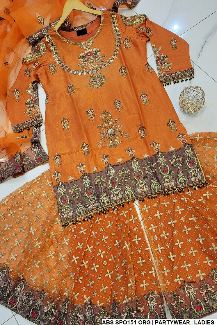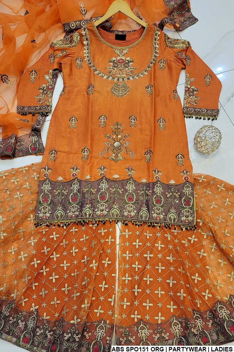 - This elegant ensemble features a masuri shirt and organza trousers, combining softness and sophistication. The dupatta is also made from organza, adding a delicate and refined touch to the outfit. The style includes a straight shirt paired with a gharara, creating a chic and traditional look with a modern twist. The shirt is available in two length options, 36 inches and 39 inches, for a customizable fit. Weighing 1.200 kg, this outfit offers a perfect balance of comfort and style, making it an ideal choice for festive or formal occasions.