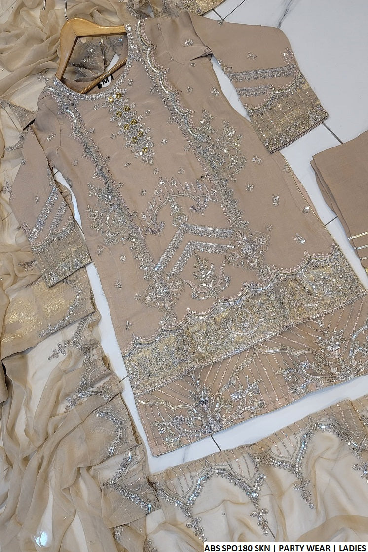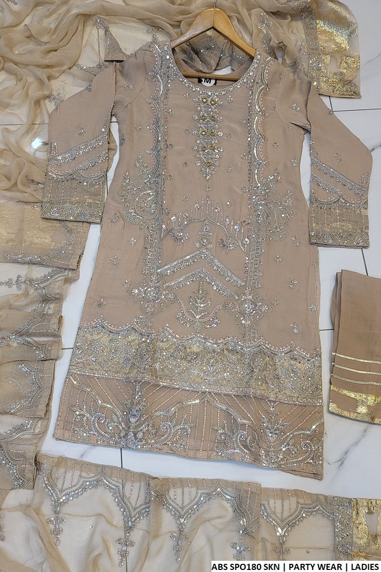 This stylish set is crafted from chiffon for both the shirt and dupatta, paired with grip fabric trousers. The straight-cut shirt, with a length of 39/41 cm, provides a modern and sleek look. Despite its sophisticated design, the entire outfit weighs just 0.750 kg, making it comfortable and lightweight. It's an ideal choice for those seeking both style and ease in their wardrobe.