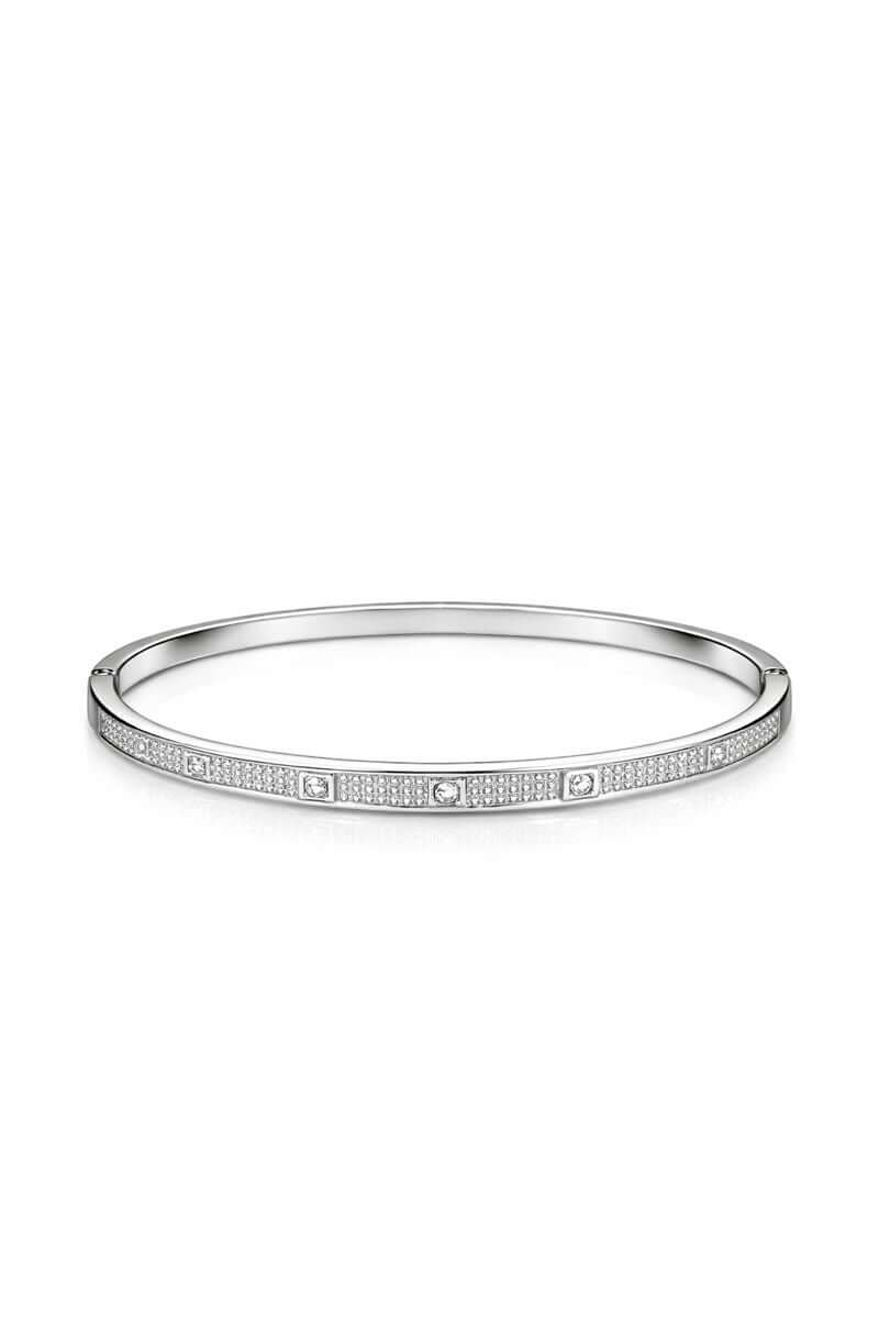 A refined silver bangle featuring a continuous line of micro-set crystals with subtle square accents. Sleek, modern, and effortlessly elegant — designed for everyday sophistication and timeless wear.