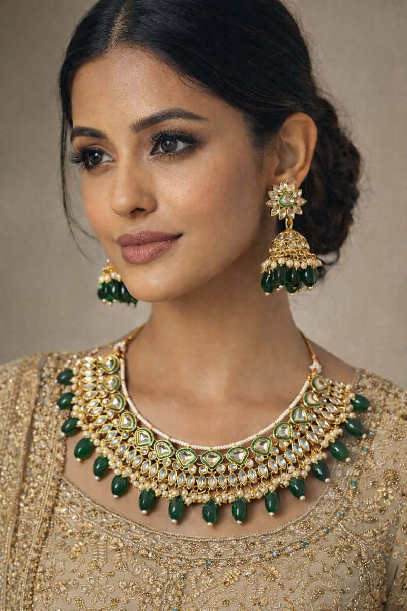 JW239 Emerald Kundan Party Set