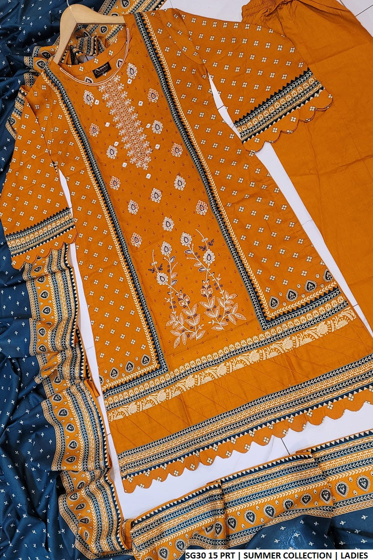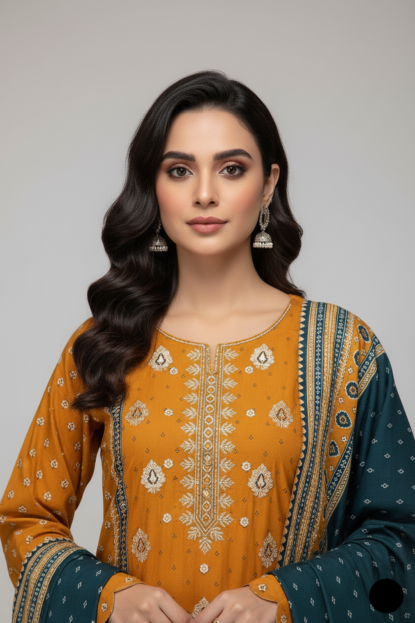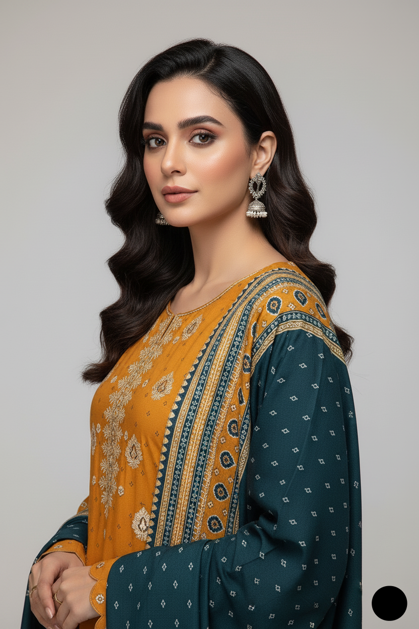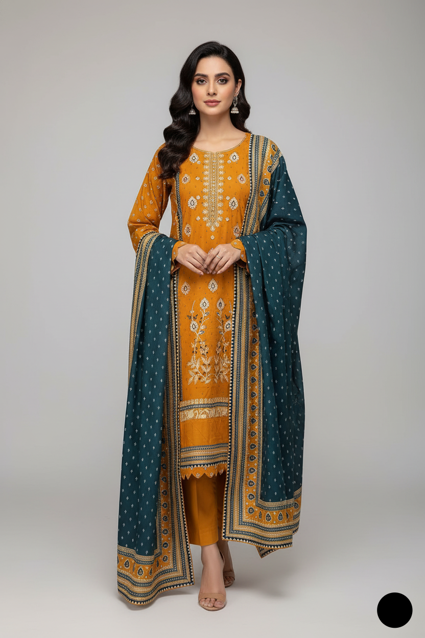 This beautifully designed 3-piece lawn outfit features a timeless straight shirt with a flattering length of 43 to 45 inches. Crafted from breathable, soft lawn fabric, the shirt and trousers provide comfort and durability for all-day wear. The matching lawn dupatta adds a cohesive and elegant touch, making it ideal for casual outings or semi-formal settings. With a total weight of 0.500 kg, it’s lightweight yet refined, perfect for warm seasons and effortless daily style.