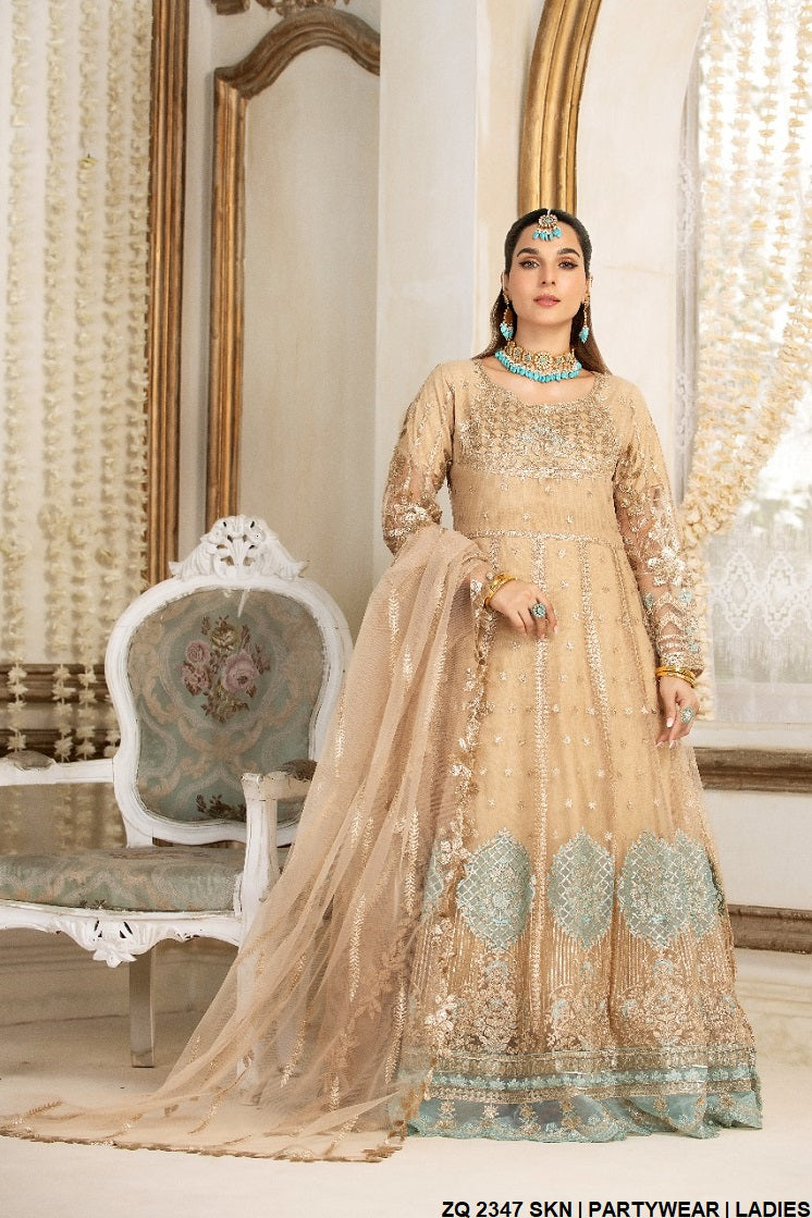 - This stunning outfit features a net fabric shirt, paired with grip fabric trousers and a net dupatta. Designed in a long maxi style, the shirt length measures 53 to 55 inches. The total weight of the ensemble is 1.300 kg, offering an elegant and sophisticated look for any special occasion.