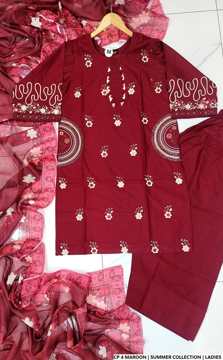Step into effortless style with this cotton shirt and Farshi Shalwar set, designed for both comfort and elegance. The shirt, with a length of 36 to 38 inches, offers a modern and flattering silhouette. Crafted from soft cotton fabric, both the shirt and plazo ensure breathable wear throughout the day. The outfit is beautifully finished with a digitally printed dupatta that adds a vibrant and trendy touch. Weighing 0.650 kg, this ensemble is ideal for casual gatherings, summer outings, or day-to-day elegance.