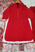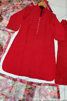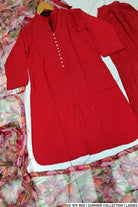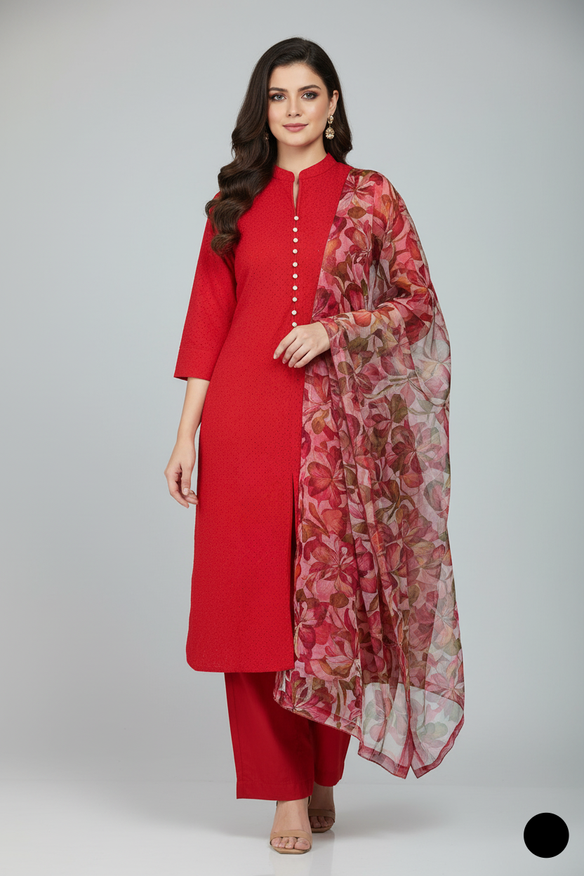 This graceful 3-piece outfit features a classic Gol Daman shirt crafted from premium cotton for comfort and breathability. It is paired with matching cotton trousers, providing a relaxed and flattering fit. The look is completed with a delicate organza dupatta that adds a touch of elegance and sophistication. With a shirt length of 42 to 44 inches, this ensemble ensures modest coverage while maintaining a chic silhouette. Weighing just 0.600 kg, it's ideal for both casual and semi-formal occasions.