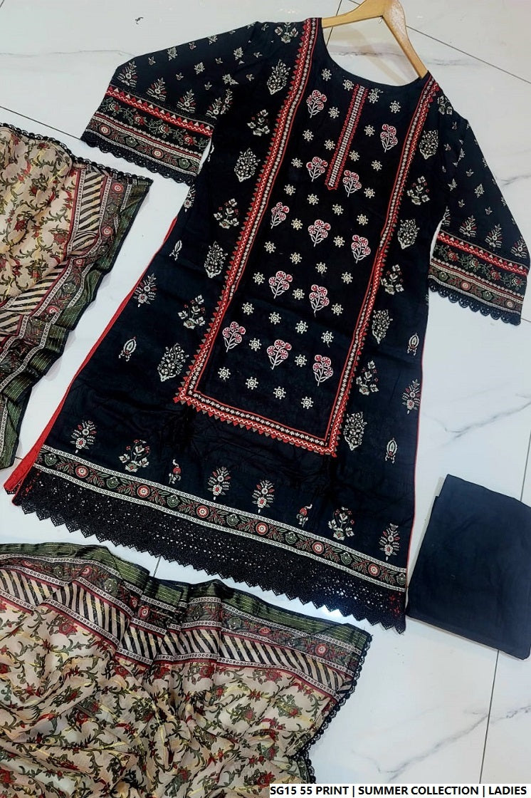 This beautifully tailored three-piece outfit is made from soft and breathable lawn fabric, ensuring all-day comfort and effortless style. The A-line shirt design, with a length of 43 to 45 inches, offers a flowy and flattering silhouette that enhances grace and femininity. Paired with matching lawn trousers, the set delivers a polished and coordinated look. A standout feature is the digital diamond dupatta, adding a touch of contemporary elegance and visual appeal. Weighing only 0.500 kg, this lightweight ensemble is perfect for daily wear or casual gatherings, blending modern fashion with traditional charm.