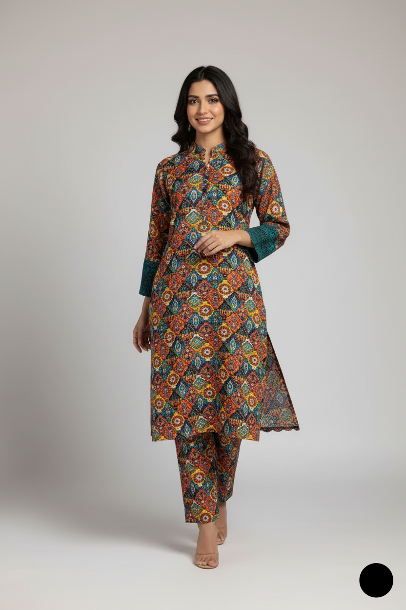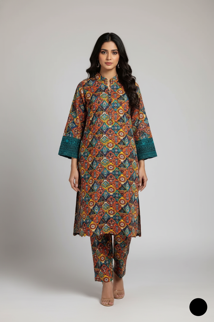 This lightweight and breathable 2-piece suit is crafted from soft lawn fabric, making it the perfect choice for warmer days and everyday wear. Featuring a straight shirt design with a shirt length of 42 to 44 inches, it offers a clean, elegant look suitable for both casual and work settings. Paired with matching lawn trousers, this outfit is designed for comfort and ease of movement. Weighing just 0.350 kg, it’s a practical and stylish pick for those who value simplicity and comfort in their wardrobe.