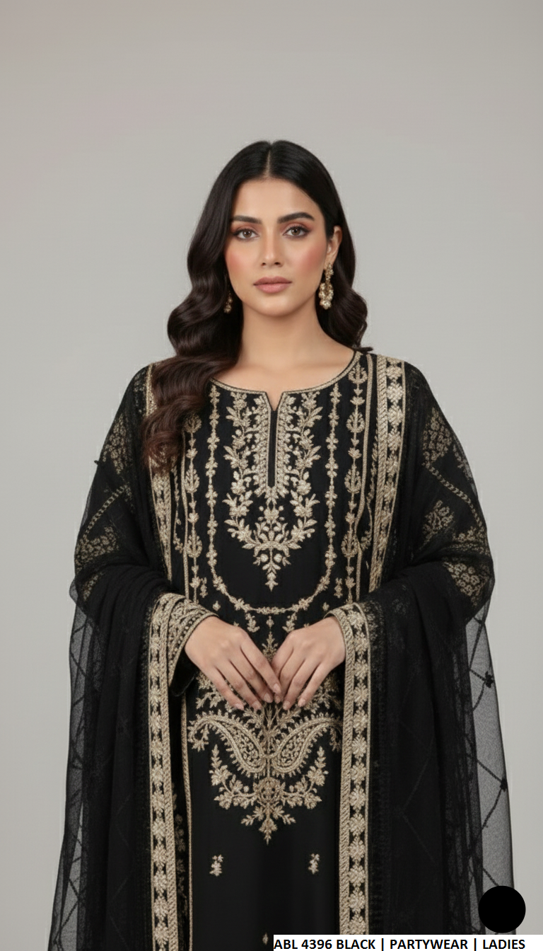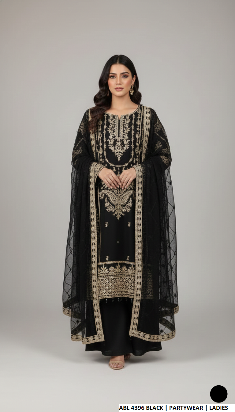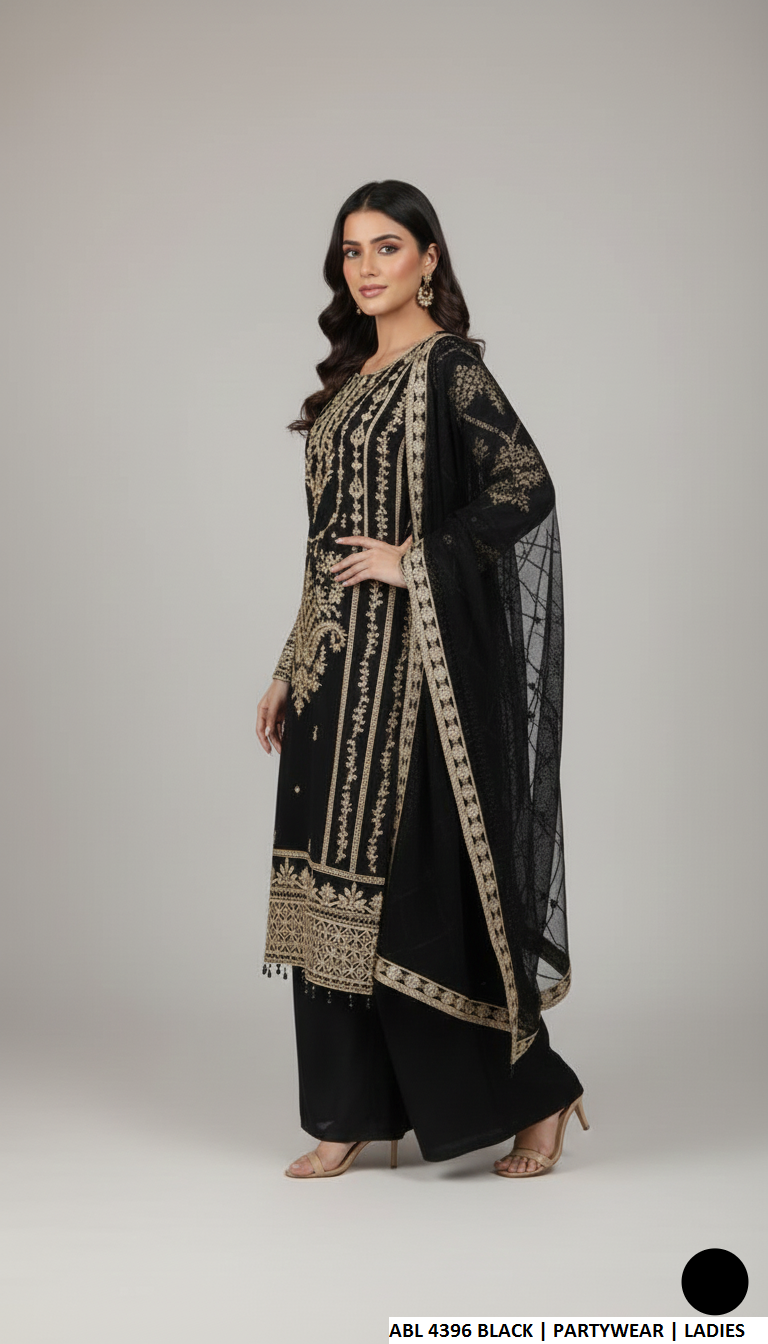 This elegant outfit features a chiffon shirt paired with a comfortable viscose trouser and a matching chiffon dupatta. Designed in a graceful A-line shirt style with plazo trousers, it offers both style and comfort. The shirt length ranges between 46 to 48 inches, making it suitable for a modest and flattering fit. The total outfit weight is approximately 1.200 kg, ensuring a lightweight yet premium feel.