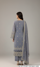 This elegant outfit features a straight-style chiffon shirt paired with a comfortable viscose plazoo, creating a graceful and modern silhouette. The look is completed with a matching chiffon dupatta, adding a soft and flowy touch. The shirt length ranges from 46 to 48 inches, making it suitable for a refined and modest appearance. The complete outfit has an approximate weight of 1.100 kg.