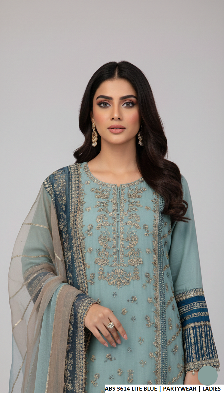 This stylish ensemble features a straight-cut shirt made from soft and flowy chiffon fabric, paired with comfortable grip fabric plazzo trousers. The look is enhanced with a lightweight organza dupatta, creating a perfect balance of elegance and comfort. With a shirt length ranging from 44 to 46 inches and a structured yet graceful silhouette, this outfit is ideal for formal events, festive wear, and special occasions.