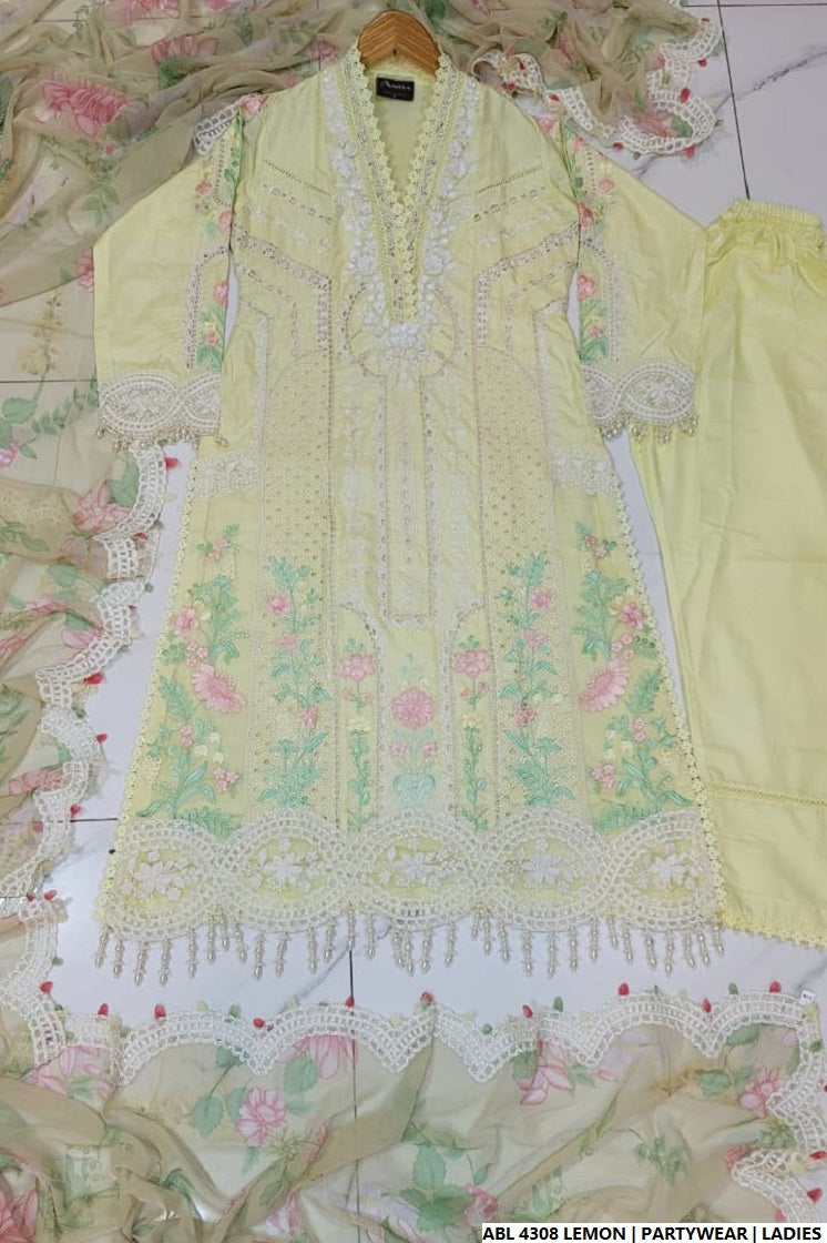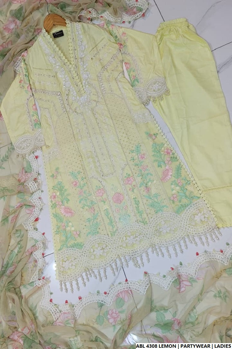 Elevate your wardrobe with this graceful 3-piece ensemble, featuring an A-line shirt and trousers made from luxurious Katan silk. The flowing A-line silhouette offers a flattering fit, with a shirt length of 47 to 49 inches, ideal for formal and festive occasions. Completing the look is a vibrant digital printed chiffon dupatta, adding a touch of modern flair and color contrast. Weighing just 0.900 kg, this outfit is designed for comfort and elegance, making it a perfect choice for events where style matters.