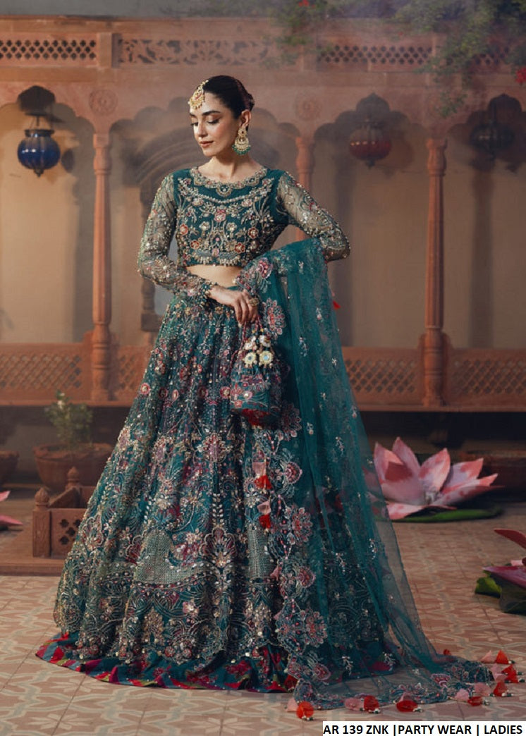 - This elegant ensemble features a delicate soft net fabric for both the shirt, lehnga, and dupatta, offering a refined and graceful appearance. Styled as a short shirt with lehnga and a pouch, it blends contemporary design with traditional charm. The shirt length ranges from 20 to 22 inches, while the lehnga length is 45 to 47 inches, creating a flattering silhouette. Weighing approximately 2.35 kg, this outfit is perfect for special occasions, combining a chic and modern style with timeless elegance.