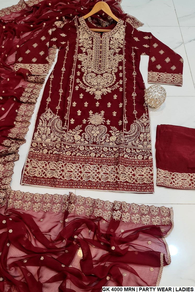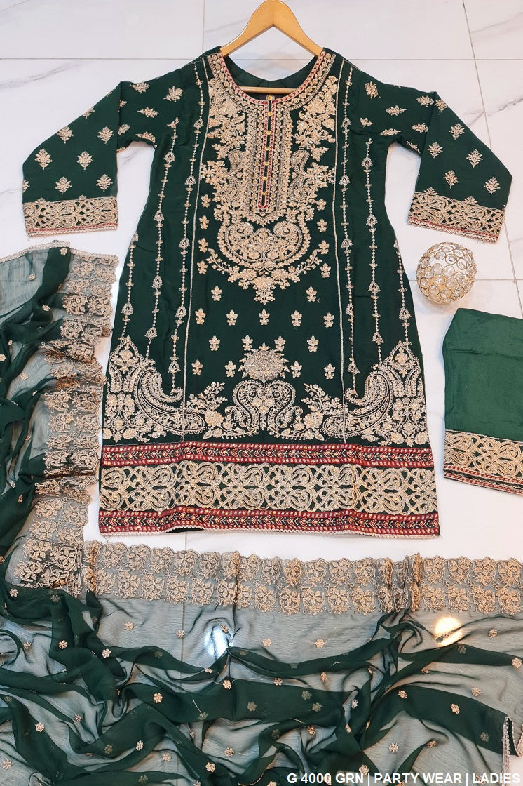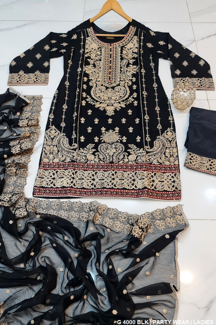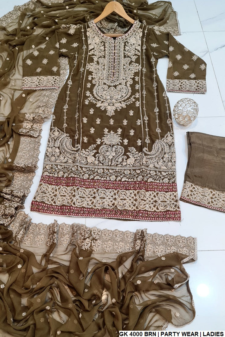 - This ensemble features a straight shirt made from elegant chiffon fabric, with a length of 42/44 inches. The trousers are crafted from grip fabric, ensuring a comfortable and secure fit. The dupatta, also made from chiffon, complements the shirt, adding a delicate flow and sophistication to the look. With a total weight of 0.650 kg, this outfit is slightly heavier, providing a luxurious feel while maintaining comfort for everyday wear.