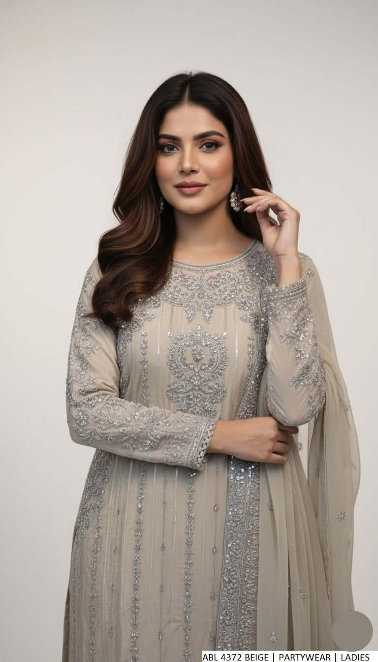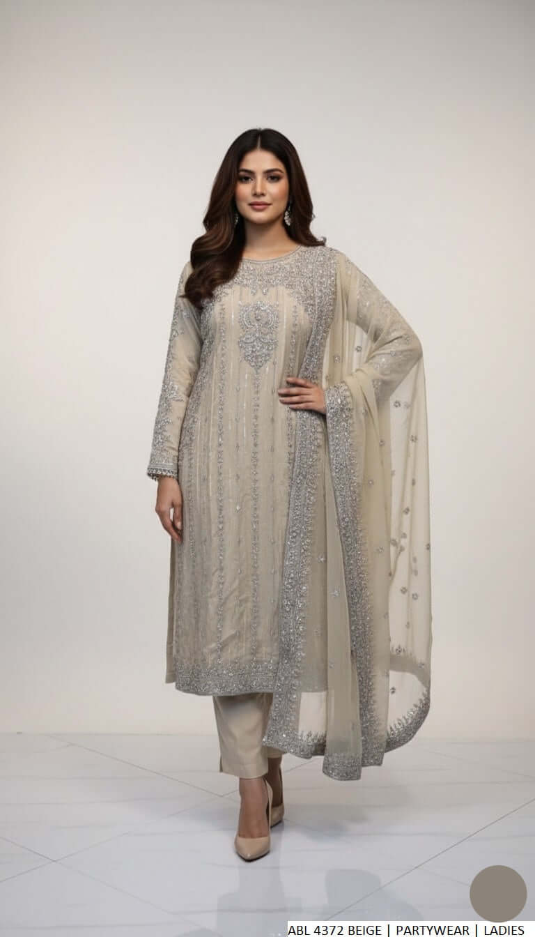 This elegant outfit features a premium silk shirt paired with matching silk trousers, offering a rich and luxurious feel. The ensemble is completed with a lightweight chiffon dupatta that adds grace and flow. Designed in a classic straight shirt style, the shirt length ranges between 45 to 47 inches, making it suitable for a refined and modest look. The total weight of the outfit is approximately 0.900 kg, ensuring comfort along with sophistication.