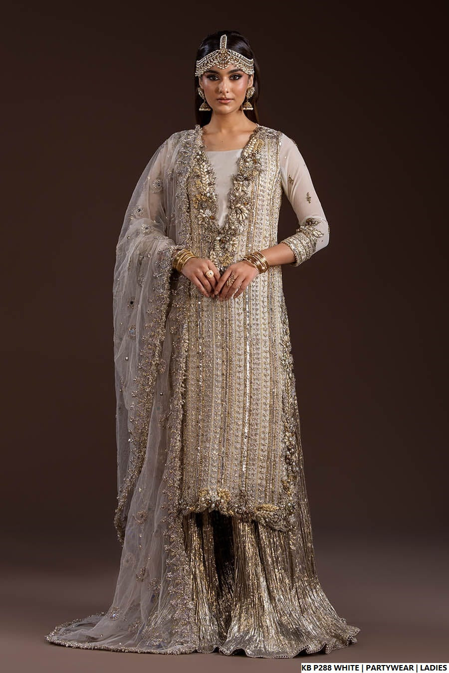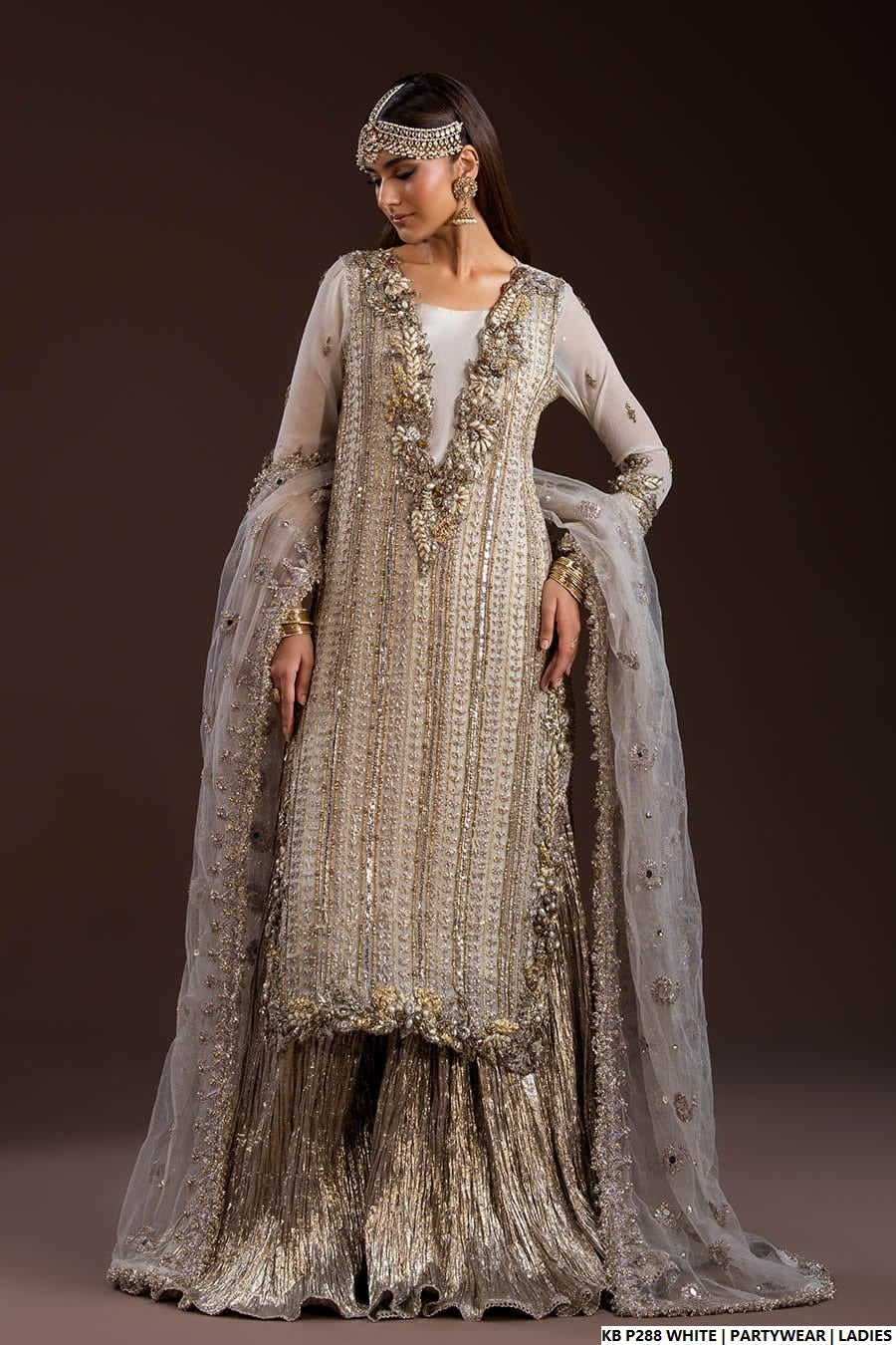 • Shirt: Crinkle Chiffon (hand-embroidered with Gotta, Kora, Dabka, sequins, pearls & stones)