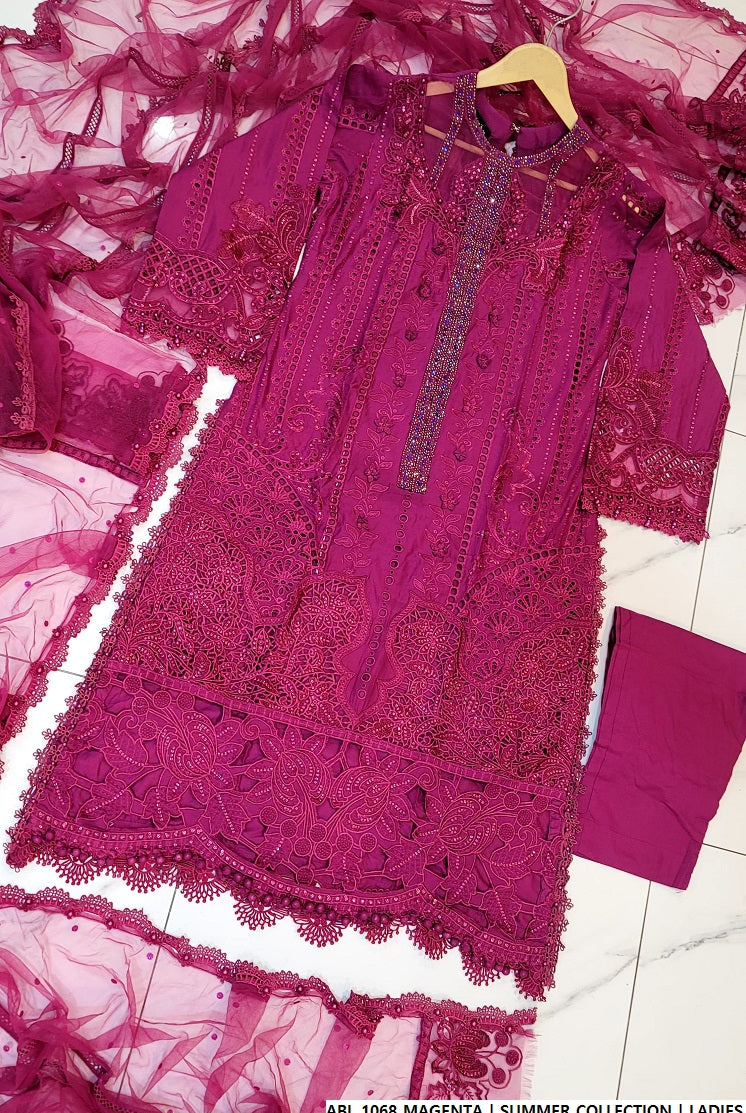 From airy lawn shirts and cotton trousers to stylish dresses and matching dupattas, the Summer Collection All combines traditional designs with contemporary trends. Each piece is crafted with high-quality materials to ensure comfort, breathability, and durability throughout the sunny season. The collection also features accessories and embellishments that perfectly complement each outfit, helping you create coordinated looks effortlessly.