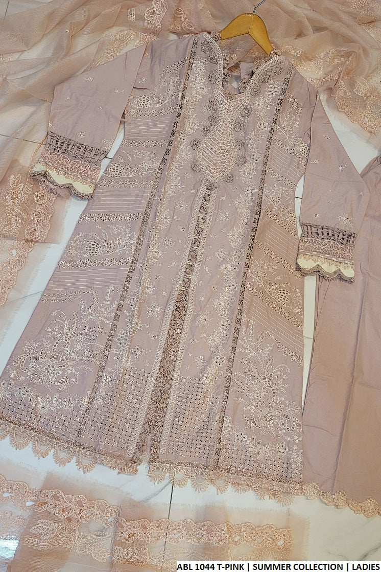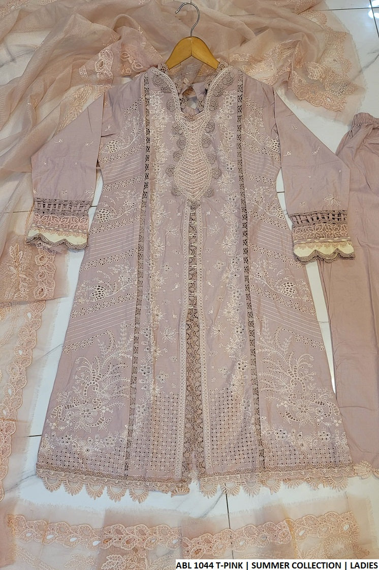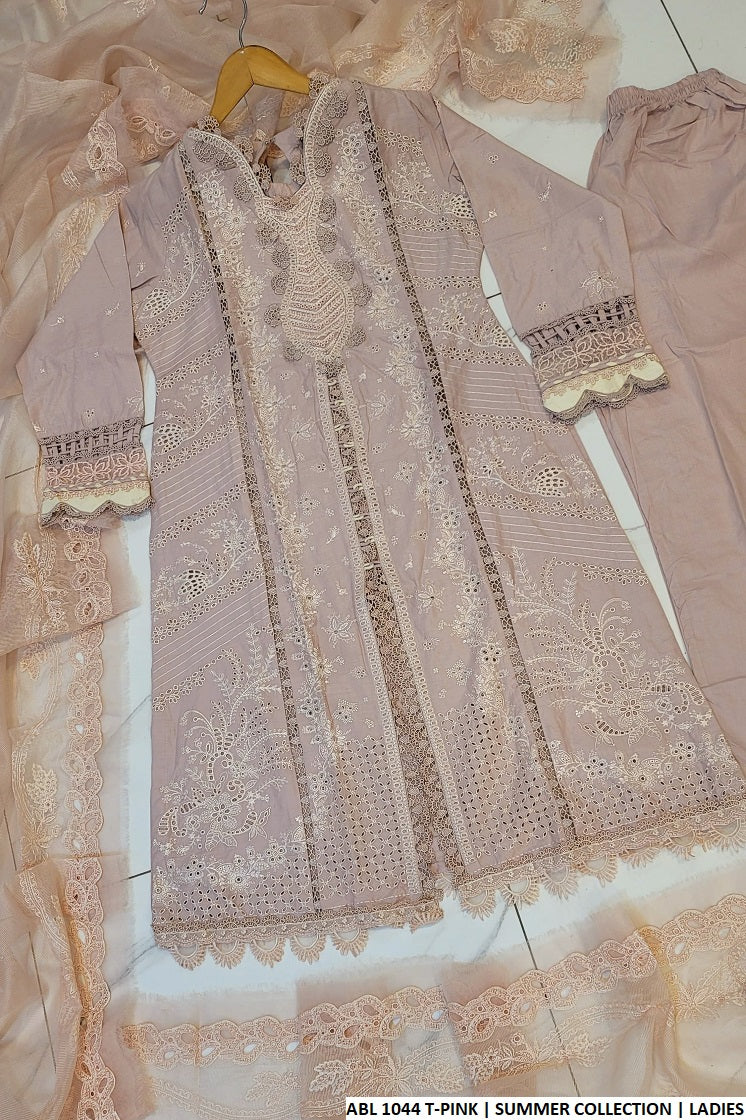 This elegant 3-piece outfit features a beautifully tailored A-line shirt made from soft, breathable cotton fabric, offering both comfort and style. Paired with matching cotton trousers, the look is completed with a delicate Khadi net dupatta that adds an extra layer of sophistication with its airy texture. With a shirt length of 42 to 44 inches and a weight of 0.850 kg, this ensemble is perfect for casual or semi-formal occasions, combining both modern charm and traditional elegance.
