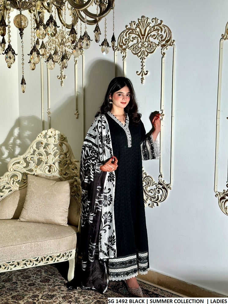 Embrace elegance with this beautifully stitched 3-piece cotton outfit, featuring a timeless long frock style. The shirt and trouser are made from high-quality cotton fabric, offering breathability and comfort, ideal for all-day wear. The ensemble is completed with a digitally printed dupatta, adding a pop of color and modern flair to the classic design. With a generous shirt length of 48 to 50 inches and a total weight of 0.750 KG, this outfit brings together style, comfort, and sophistication, perfect for festive events or graceful everyday looks.