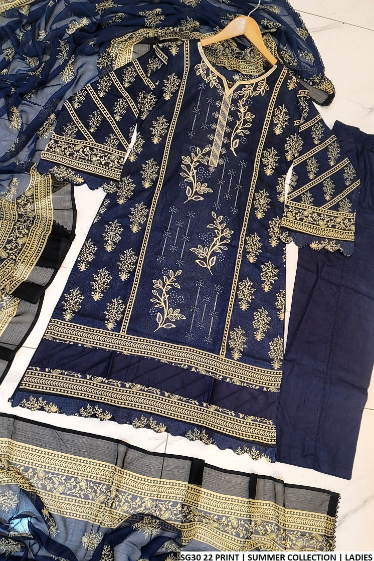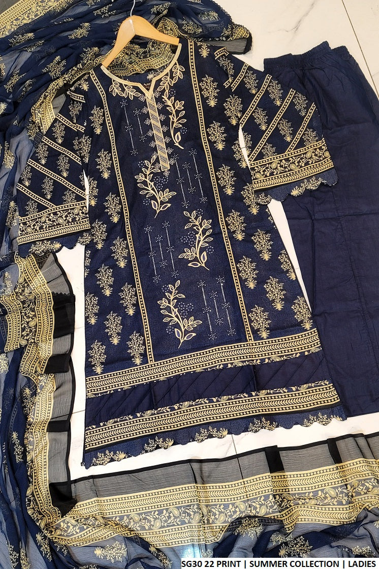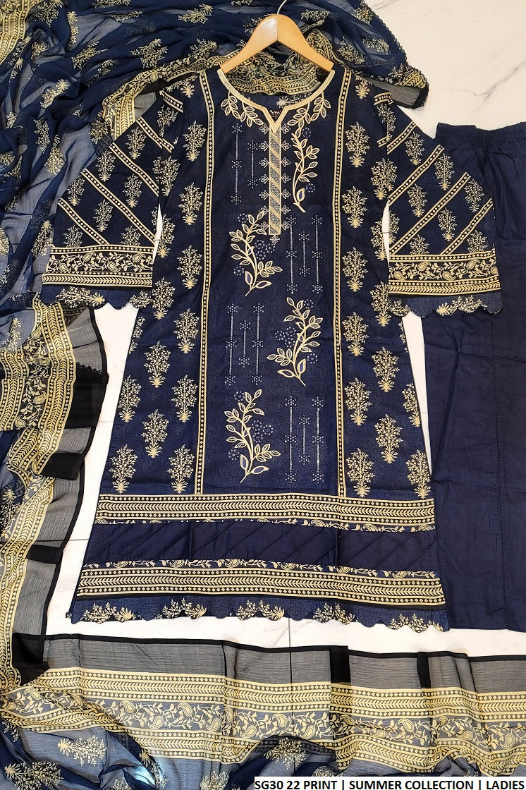 This elegant A-line shirt is made from premium lawn fabric, offering a comfortable yet stylish fit. The matching lawn trousers complement the look, while the digital print dupatta adds a unique and vibrant touch. Available in shirt lengths of 42 and 44, this ensemble ensures a perfect fit for different body types. With a lightweight design weighing just 0.450 kg, it is ideal for both casual and formal occasions, offering both style and comfort.
