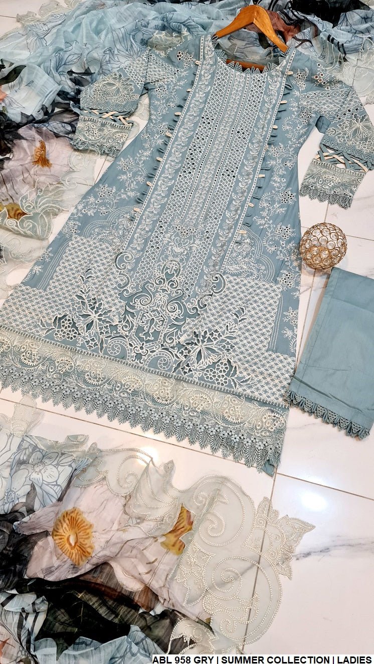 - This ensemble features an A-line shirt crafted from comfortable and breathable cotton fabric, ensuring a relaxed and stylish fit. The shirt comes in lengths of 43 to 45 inches, providing versatility in styling. Paired with matching cotton trousers, it offers a cohesive look that's both comfortable and practical. The dupatta is made from khadi net fabric, adding an elegant touch and enhancing the overall appeal of the outfit. Weighing just 0.700 kg, this outfit is perfect for casual wear while still exuding a sense of refined simplicity.