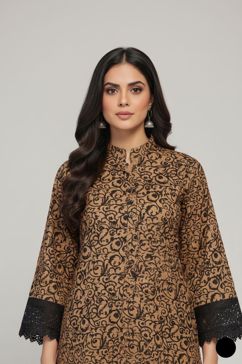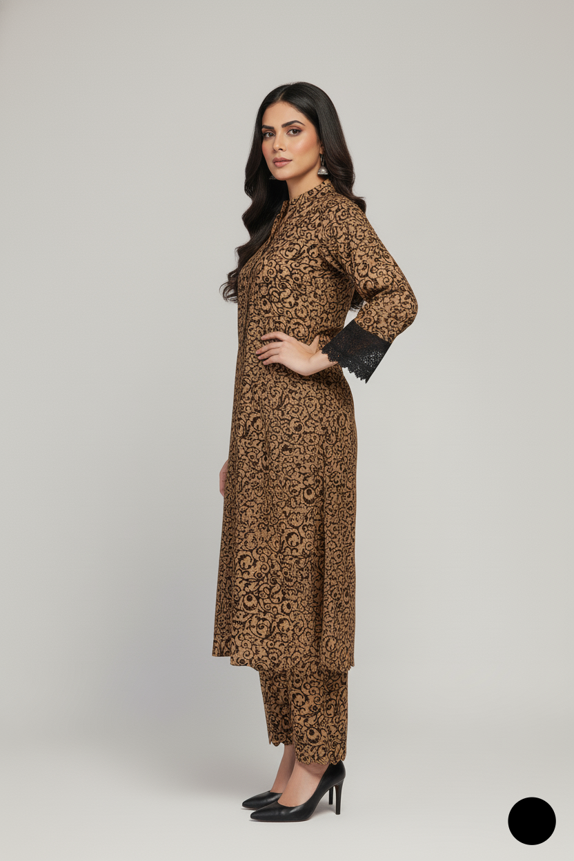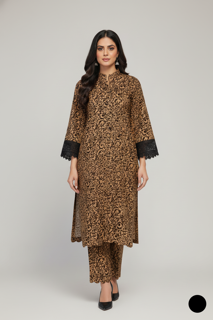 This beautiful 3-piece lawn outfit features a traditionally styled Gool Daman shirt that adds graceful flow to your silhouette. The shirt comes in a flattering 42 to 44 inch length, made from soft and breathable lawn fabric, perfect for warm weather. Paired with matching lawn trousers and a 2-piece dupatta, this set brings comfort and elegance together. Weighing only 0.350 kg, it’s a lightweight choice for everyday or casual festive wear.
