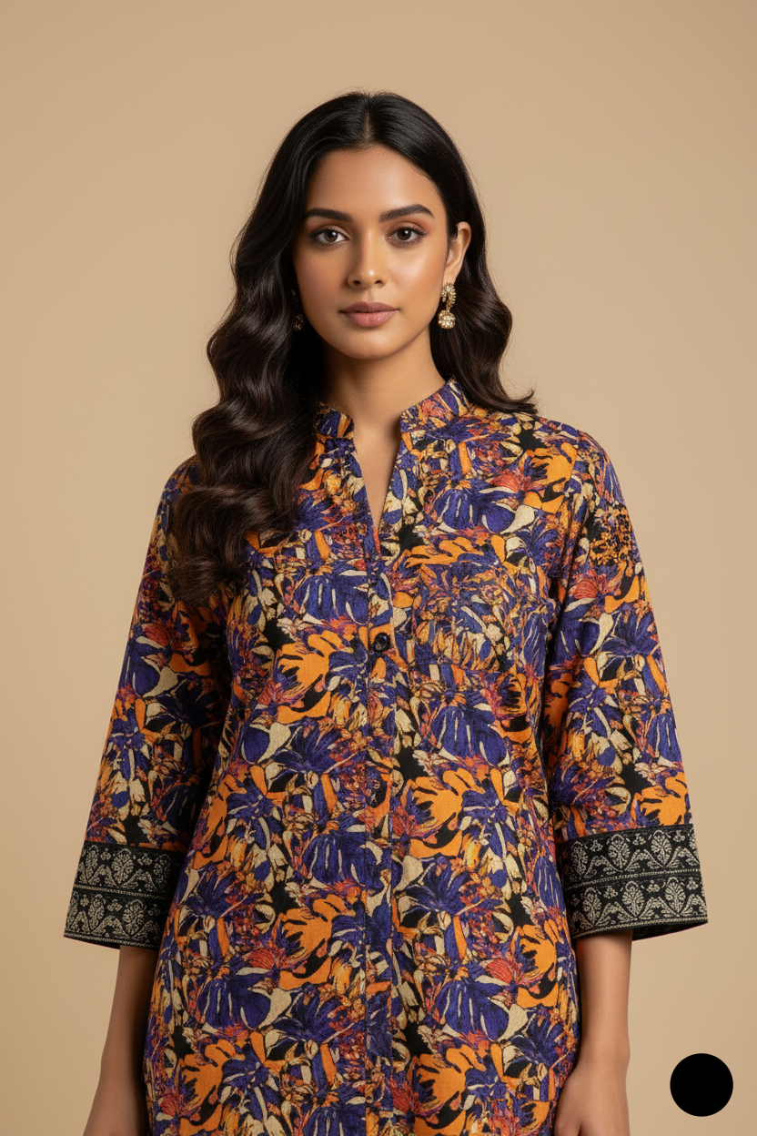 This beautifully designed 2-piece outfit is made from breathable cotton fabric, making it an ideal choice for warm weather and daily wear. Featuring a goal daman shirt with a flattering flare and a shirt length of 42 to 44 inches, it offers a modest yet stylish silhouette. The matching cotton trousers complete the look, ensuring both comfort and coordination. Weighing only 0.350 kg, this lightweight ensemble is perfect for everyday use, whether you're headed to work, running errands, or attending casual get-togethers.