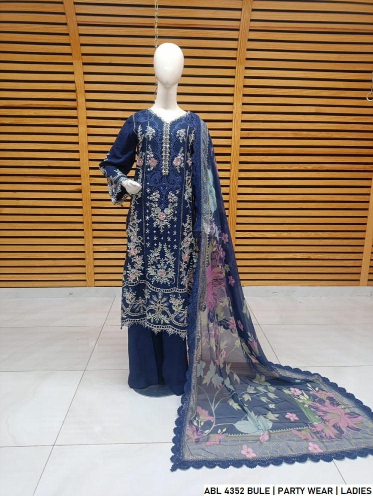 This elegant 3-piece ensemble is crafted for style and comfort. It features a Chiffon straight shirt paired with Grip plazo trousers, creating a graceful silhouette that’s ideal for both formal and semi-formal occasions. The outfit is elevated with a beautifully Digital Printed dupatta, adding a vibrant touch to the overall look. With a shirt length of 46 to 48 inches and a total weight of 1.050 kg, this outfit ensures lightweight elegance and ease of wear.