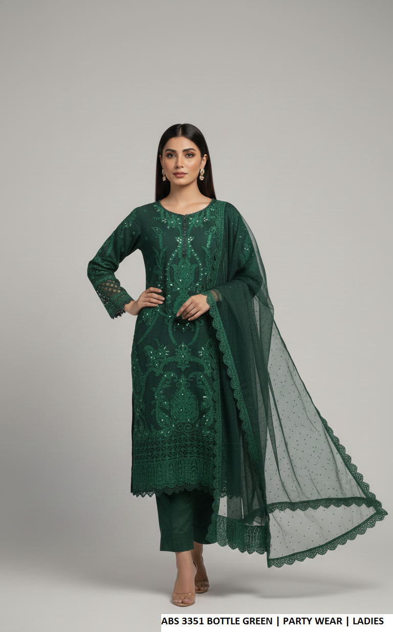 This stunning ensemble features a stylish A-line shirt made from premium chiffon, offering a soft and graceful drape. The shirt length ranges between 47 to 49 inches, adding elegance and sophistication to the look. It is paired with a comfortable grip fabric trouser and a matching chiffon dupatta, making it an ideal choice for both formal and semi-formal occasions. With a total weight of 1.150 kg, this outfit is substantial yet easy to carry, perfect for all-day wear with a refined appearance.