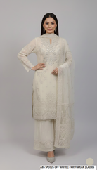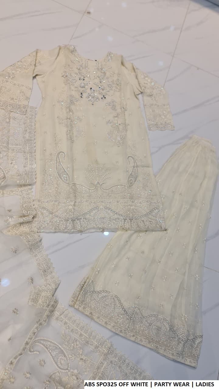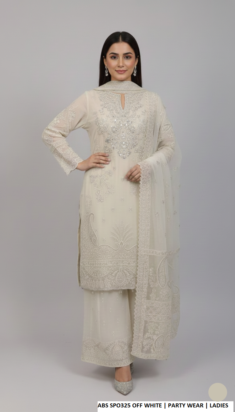 This elegant outfit is crafted with a chiffon straight shirt paired with matching chiffon trousers and a delicate organza dupatta. Designed in a classic straight shirt style, it offers a refined and graceful look suitable for both formal and semi-formal occasions. The shirt is available in a length of 40/42 inches, providing a comfortable and flattering fit. With an approximate weight of 1.100 kg, the outfit balances comfort with a premium feel.