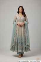 This luxurious outfit features a soft net shirt paired with a sturdy grip trouser and a graceful organza dupatta. Designed in a long maxi style, it creates an elegant and flowing silhouette. With a shirt length ranging from 54 to 56 inches, the ensemble offers a sophisticated and modest look. Weighing approximately 1.500 kg, it delivers a premium feel, making it ideal for formal and festive occasions.