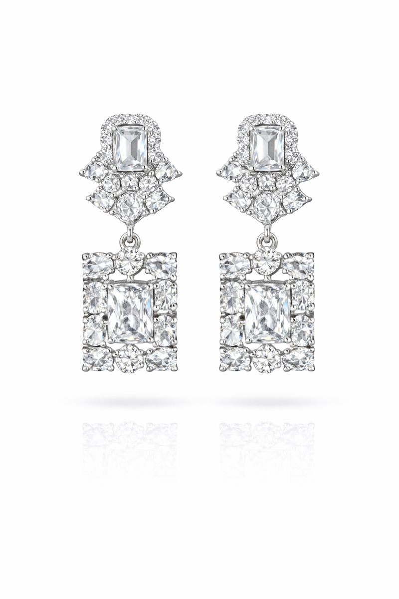 Elevate your look with these elegant emerald-green square drop earrings, framed with high-shine crystal detailing. Designed to reflect luxury and sophistication, they add a refined sparkle to both festive and evening wear. Lightweight, graceful, and effortlessly eye-catching — a timeless statement piece for any jewellery collection.