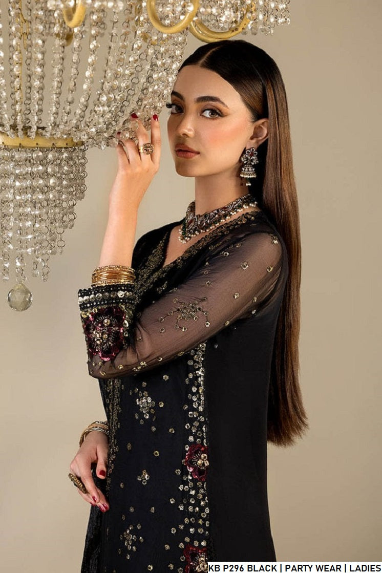 Shirt: Crinkle Chiffon (Embellished with Gotta n Sequins along with Velvet 3d flowers)