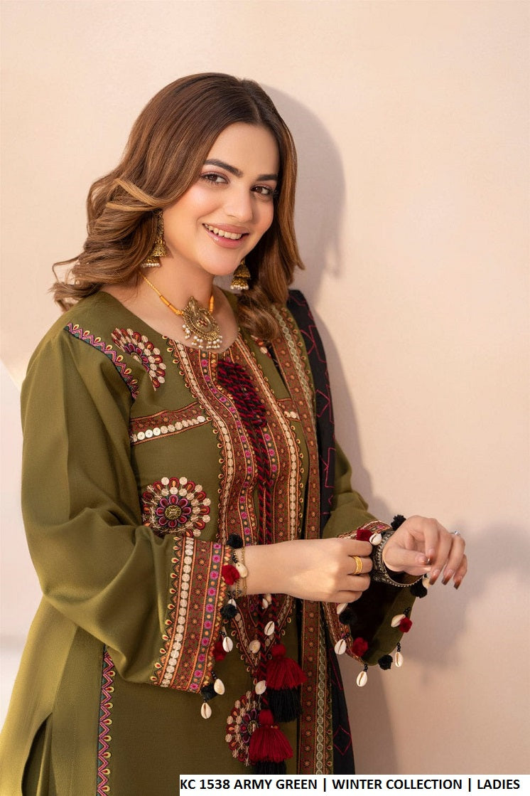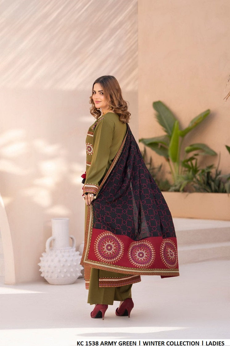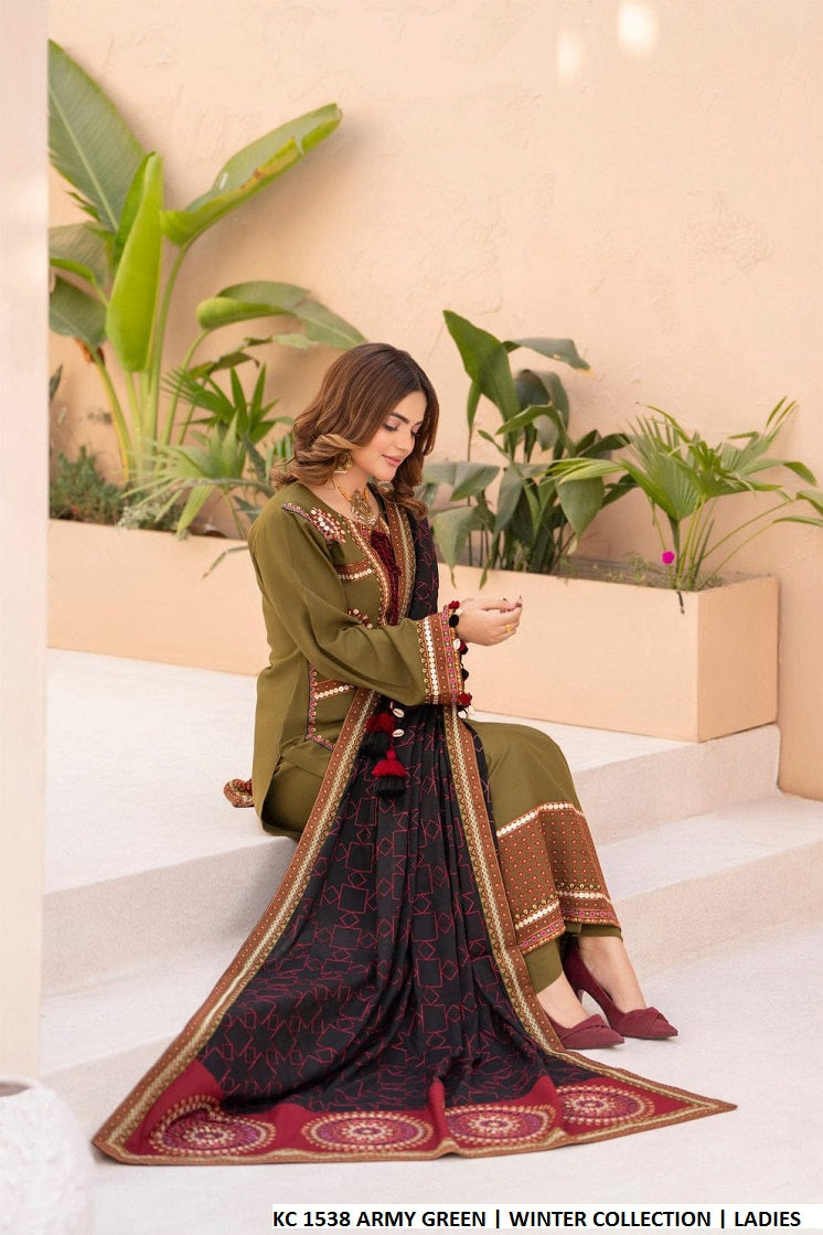 This elegant outfit is crafted from premium-quality Dhanak fabric for both the shirt and trouser, offering warmth and comfort during the winter season. It is paired with a beautifully embroidered shawl that enhances the overall look with a touch of sophistication. Designed in a classic shirt with palazzo style, the shirt comes in a graceful length of 46/48 inches. With an approximate weight of 1.150 kg, this outfit provides a perfect balance of style, comfort, and seasonal practicality.