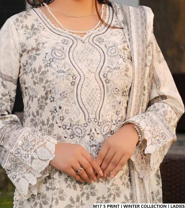 This winter-ready outfit features a straight shirt and trousers made from warm and soft Dhanak fabric, paired with a cozy wool shawl dupatta. The shirt length ranges between 42 to 44 inches, providing a flattering silhouette for all body types. With a total weight of just 0.800 KG, this ensemble is both lightweight and perfect for colder weather while ensuring comfort and style.