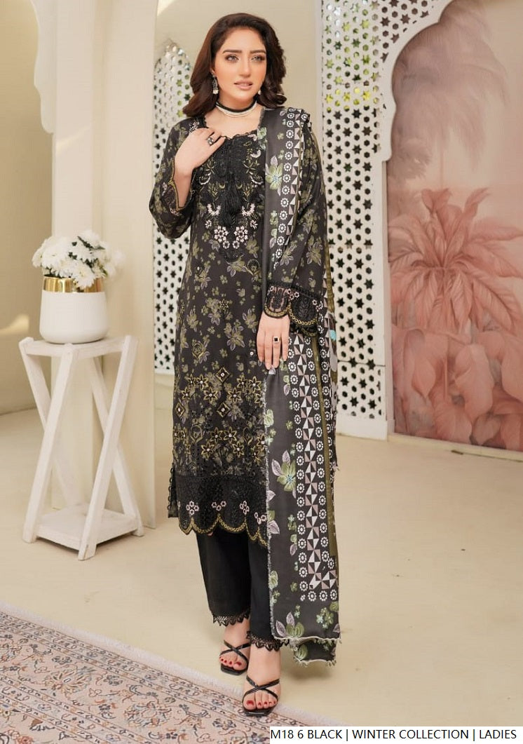 This elegant outfit features a straight shirt style made from premium Dhanak fabric, offering both warmth and style for cooler seasons. The shirt length measures 42 to 44 inches, ensuring a flattering silhouette. It is paired with Dhanak trousers for a coordinated look and complemented by a luxurious wool shawl dupatta, adding a touch of traditional sophistication. With a total weight of 0.700 KG, this ensemble balances comfort with quality, making it a perfect choice for casual or semi-formal occasions during the fall and winter months.