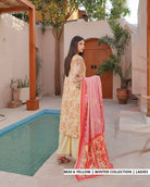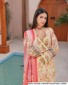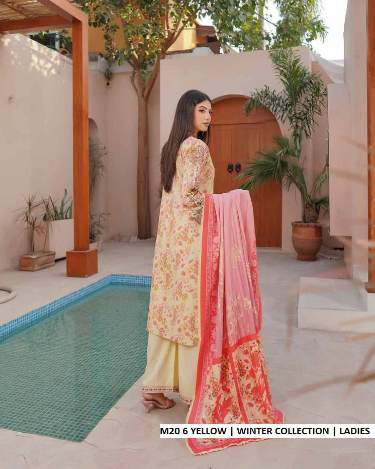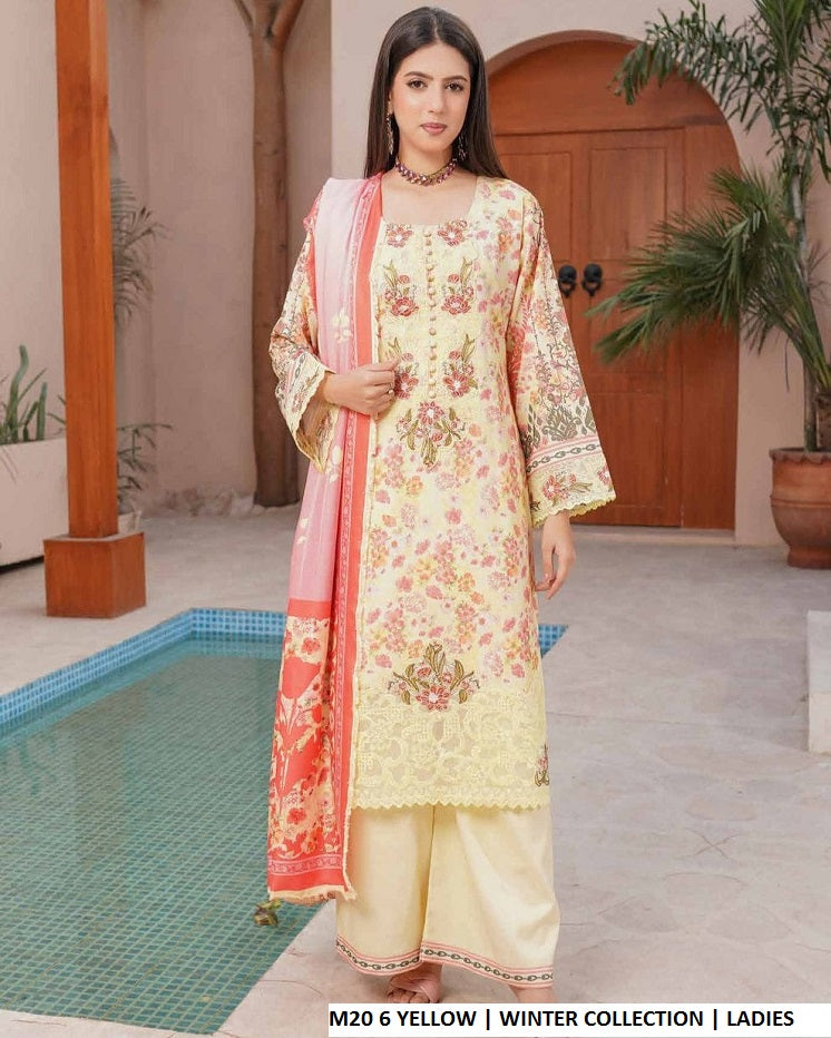 This outfit is made from high-quality dhanakh fabric for both the shirt and trousers, offering warmth and comfort during cooler seasons. It is paired with a soft wool shawl dupatta that adds a cozy yet elegant touch. Designed in a straight shirt style, the outfit features a shirt length of 43 / 45 inches and has an approximate weight of 0.750 kg, making it ideal for winter and seasonal wear.